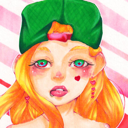 J'utilise principalement des Copic markers (des feutres à alcool) mais il m'arrive d'utiliser en complément des crayons de couleur, du pastel, de l'aquarelle et des Posca (feutre à peinture acrylique).